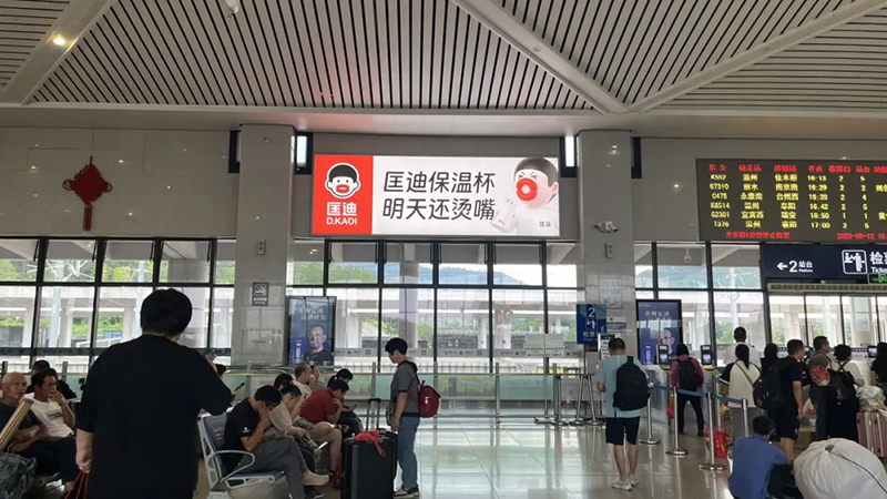 呂總也是當(dāng)場(chǎng)拍板,馬上運(yùn)用。第一時(shí)間開(kāi)心地在大本營(yíng)永康高鐵站投了一塊廣告牌,展示我們新的品牌形象。