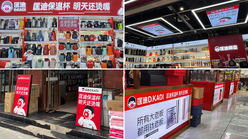 超級(jí)符號(hào)、超級(jí)展會(huì)讓匡迪一夜成名,成為保溫杯行業(yè)的“超級(jí)巨星”,成功吸引了經(jīng)銷商和市場(chǎng)的目光,品牌影響力瞬間爆發(fā)。原來(lái)匡迪進(jìn)不去的商超百貨渠道,現(xiàn)在進(jìn)去了。