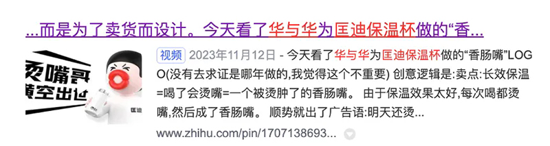 這句話一方面運(yùn)用了人類集體的經(jīng)驗(yàn)和潛意識(shí),另一方面,把原本負(fù)面的“燙嘴”,變成了正向的宣傳,來(lái)證明匡迪保溫杯的品質(zhì),傳播我們的品牌名。
