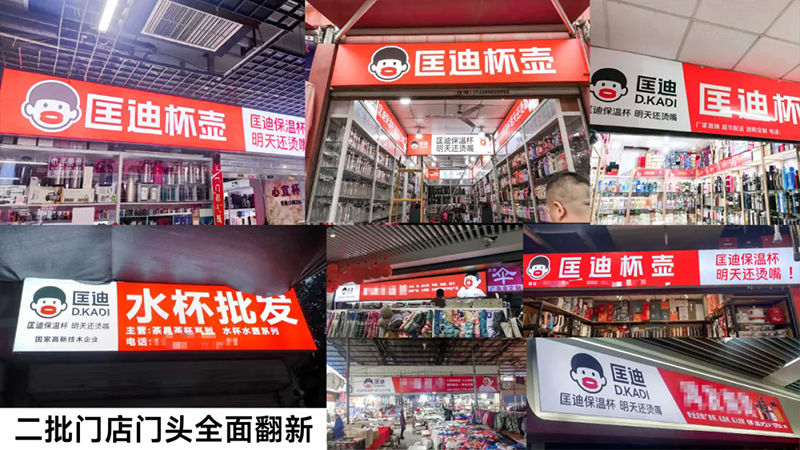 超級(jí)符號(hào)上門(mén)頭,讓它們?cè)谂l(fā)市場(chǎng)中成為最亮眼、最具吸引力的成交陣地,讓客戶的客戶也賺錢(qián)。當(dāng)你走進(jìn)批發(fā)市場(chǎng),最先撲面而來(lái)的就是那醒目的匡迪保溫杯門(mén)頭。