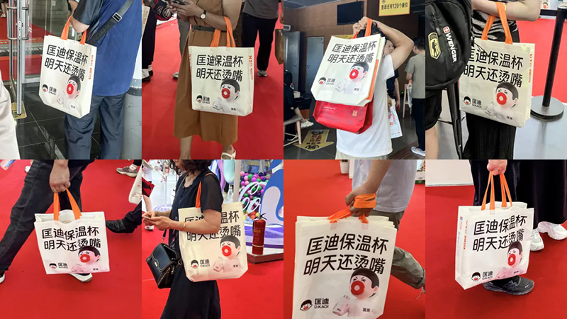 不僅如此,我們還讓所有參展者成為我們的宣傳大使。我們?cè)O(shè)計(jì)了一款展會(huì)專用的挎包,作為核心道具發(fā)送給參展者,走到哪兒都能看到背著匡迪挎包的人群。甚至有些人把它當(dāng)成了日??姘?。