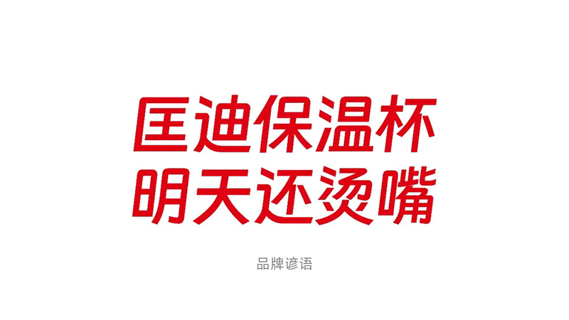在超級符號創(chuàng)造過程中,有多個創(chuàng)意方向,直到我們確定了匡迪的品牌諺語“匡迪保溫杯,明天還燙嘴”,符號方向才確定下來。當(dāng)品牌諺語確定之后,我們項目組都很興奮,因為這樣一來,話語創(chuàng)意和符號創(chuàng)意可以一體化詮釋“保溫”的理念,釋放更大的信號能量!