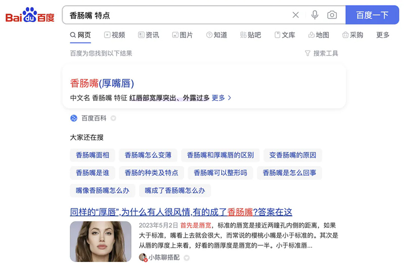 什么是搜盡奇峰打草稿?說通俗一點,就是找參考,總結(jié)規(guī)律、找到特點,然后用在自己的設(shè)計當(dāng)中。搜盡奇峰打草稿最簡單的方式是什么?只要你在百度的搜索框里面打上這個問題的關(guān)鍵詞,如“香腸嘴特點”,就能搜索出多個特點。