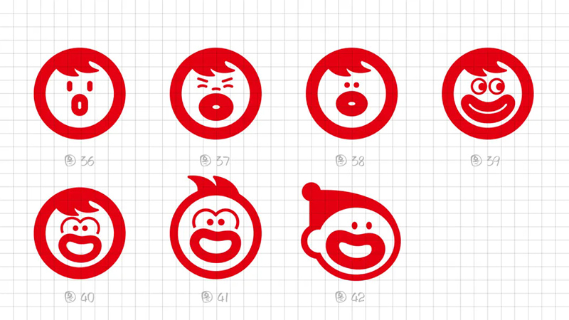 我們再把方案匯總周一上會,華板一眼就選中,后來經(jīng)過細微的調(diào)整,項目小組長周云鳳說面部表現(xiàn)還可以做減法,去掉鼻子,加強突出香腸嘴,一眼瞟過去就能夠識別到香腸嘴。