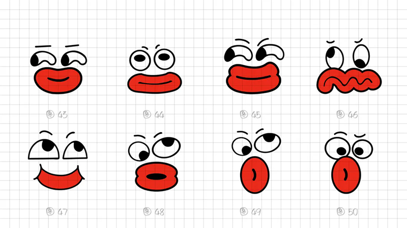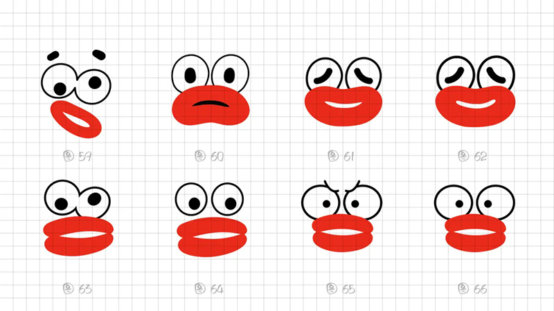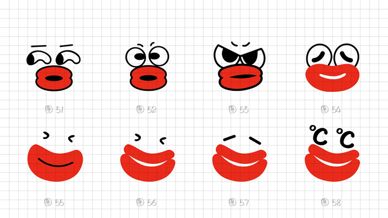 2)表情夸張:從嘴唇的形態(tài)探索,到形態(tài)上微笑的彎曲弧度大小、到燙到呼氣的表情、到燙到吐舌頭變化調(diào)整的嘗試,想用五官輔助表達燙的瞬間,去抓驚訝、小心翼翼喝熱水或喝熱水舒服的表情瞬間。
